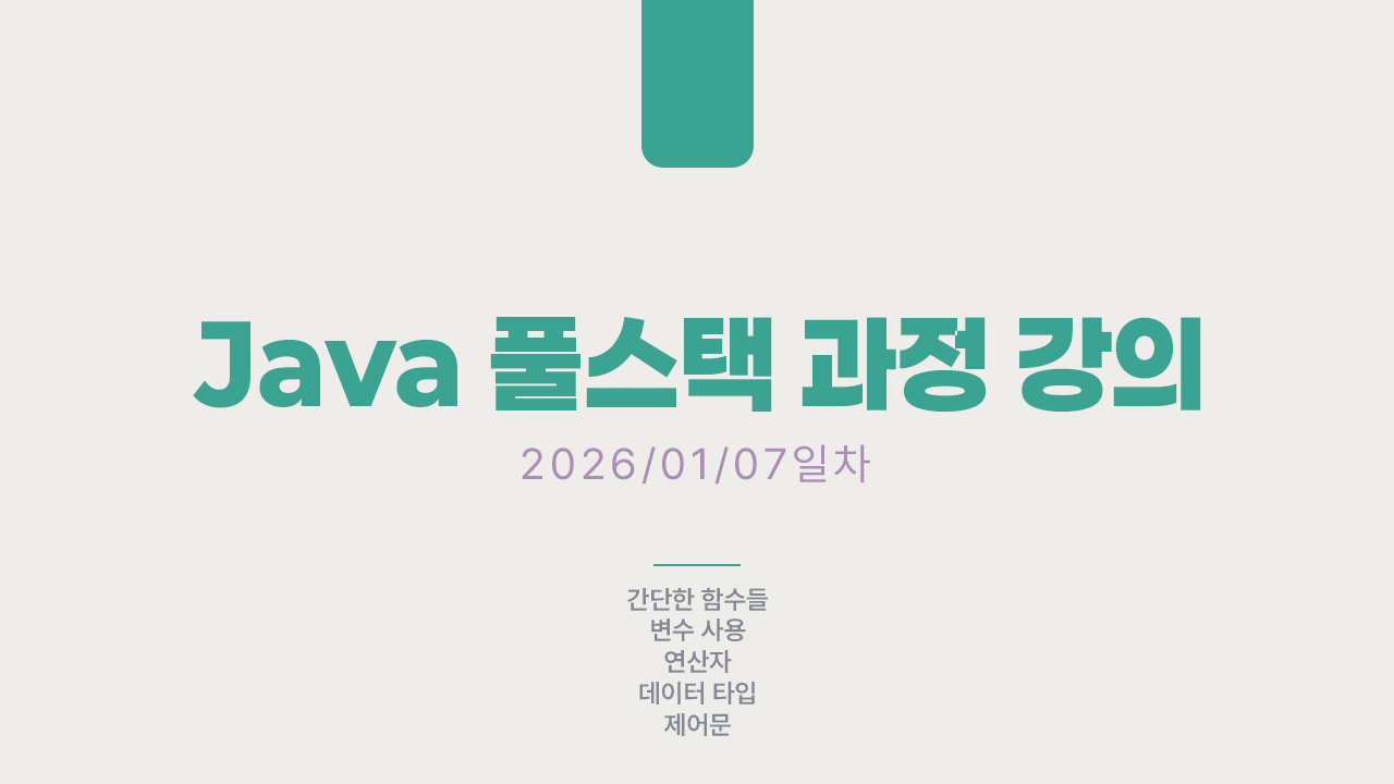 | [Java 풀스택 과정 강의] 1월 5-6일차 (0) | 2026.01.08 |