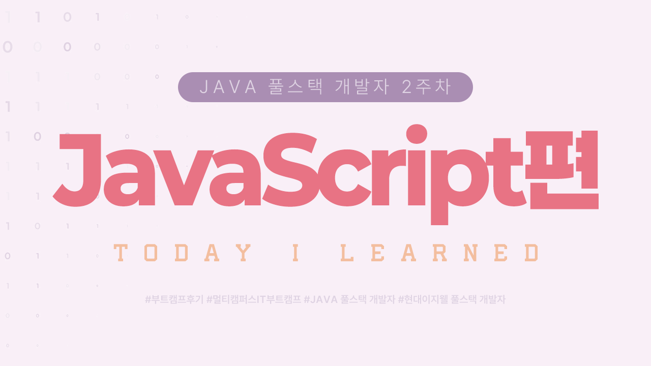 오늘부터는 프런트엔드의 꽃인 JavaScript 정리를 할 예정이다. 사실 강의는 이벤트 리스너에서 종료된 상태이지만, 충분히 일주일의 내용을 돌아볼 수 있다. 그리고 지난 주 HTMl/CSS 편과 다르게 직접 과제로 제출한 코드도 리뷰해볼 예정이다.
