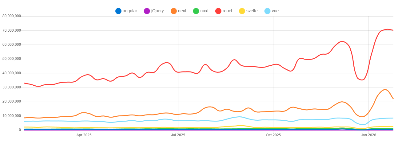 단, jQuery나 Vue의 경우는 CDN 선호가 더 높기 때문에 어느 정도 감안해서 보면 좋다.
