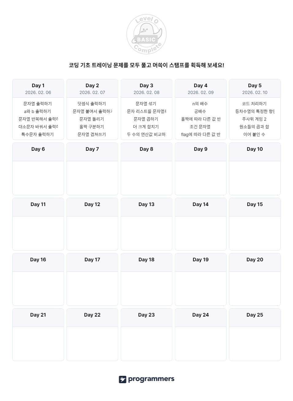 | [코딩 테스트 RUN] 코딩 기초 트레이닝 2일차 (0) | 2026.02.07 |