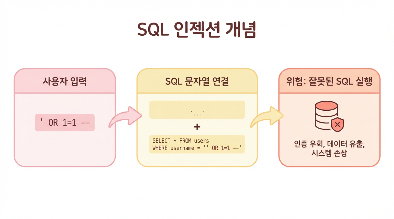 stmt.executeQuery(sql); // 의도치 않은 SQL이 실행됨
