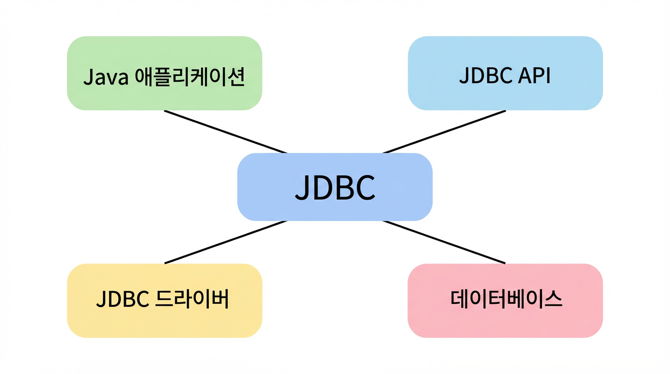 정리하면 JDBC API는 java.sql 패키지에 정의된 인터페이스들(Connection, Statement, ResultSet 등)이고, JDBC 드라이버는 각 DB 벤더가 이 API를 구현한 라이브러리다. MySQL Connector/J, Oracle JDBC Driver 같은 것들이 그 예라고 보면 된다.