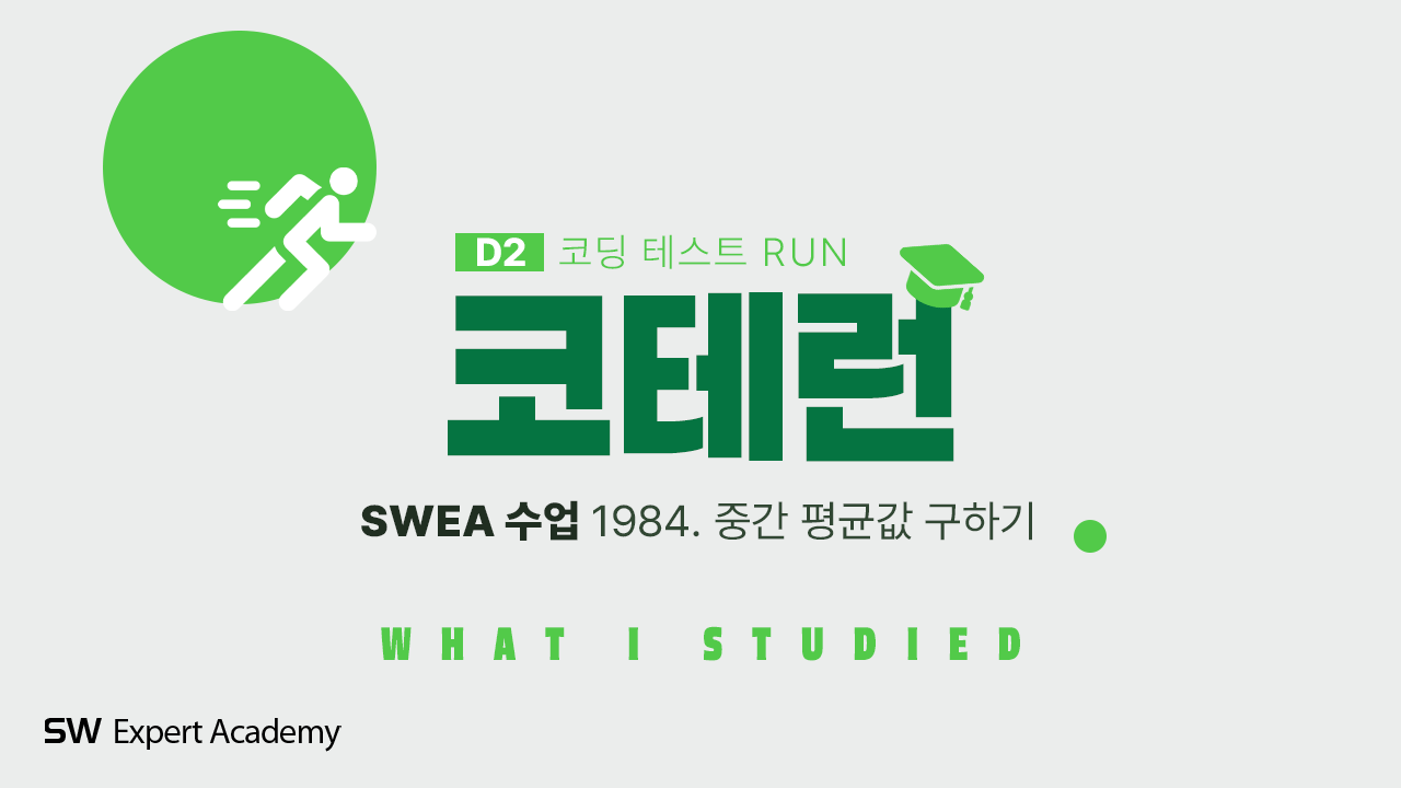 | [코딩 테스트 RUN] SWEA 수업 : 2063. 중간값 찾기 (0) | 2026.03.02 |